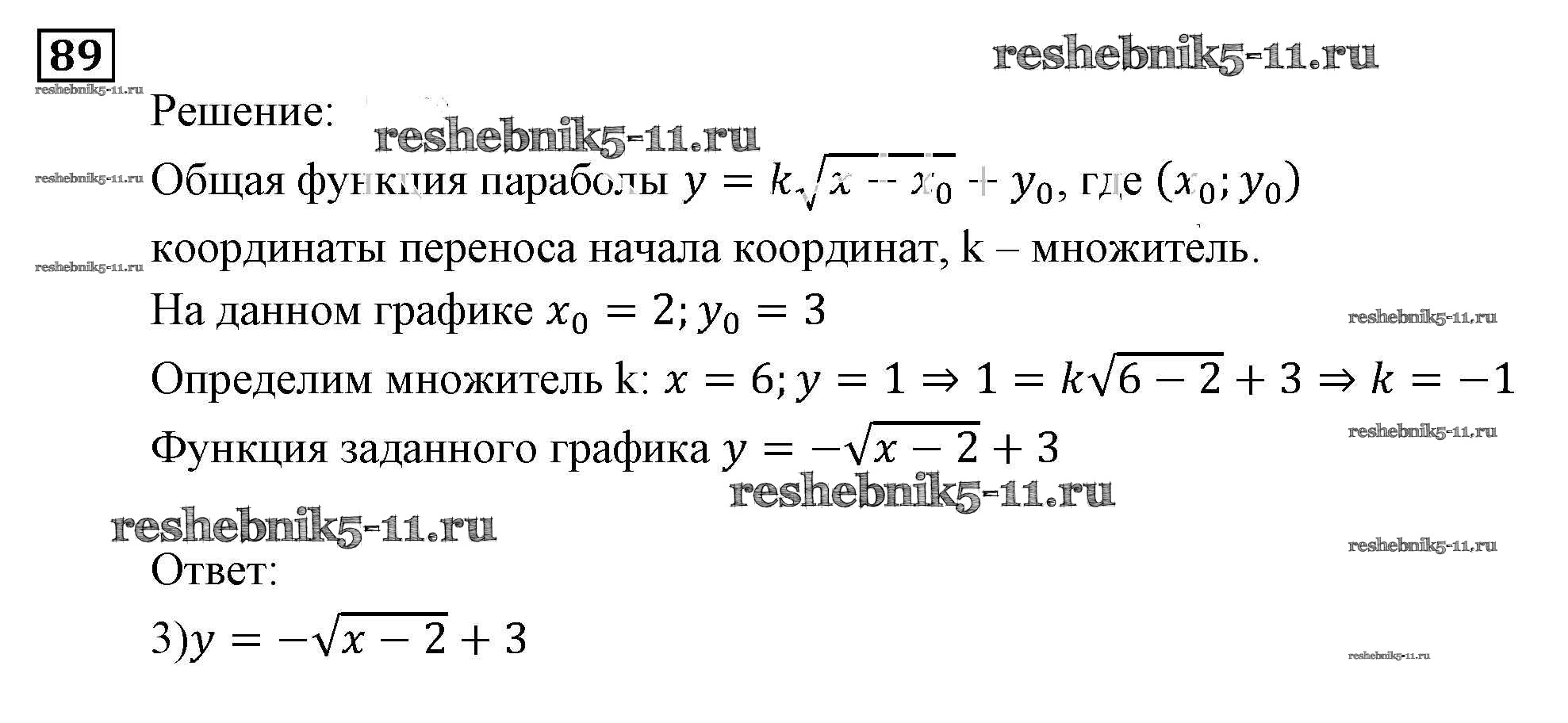 Готовая домашняя работа с ответами по Алгебре за 9 класс Мордкович, Александрова, Мишустина, Тульчинская, Семёнов Задачник Часть 2 Мнемозина 2010 ФГОС - Функции и графики 89