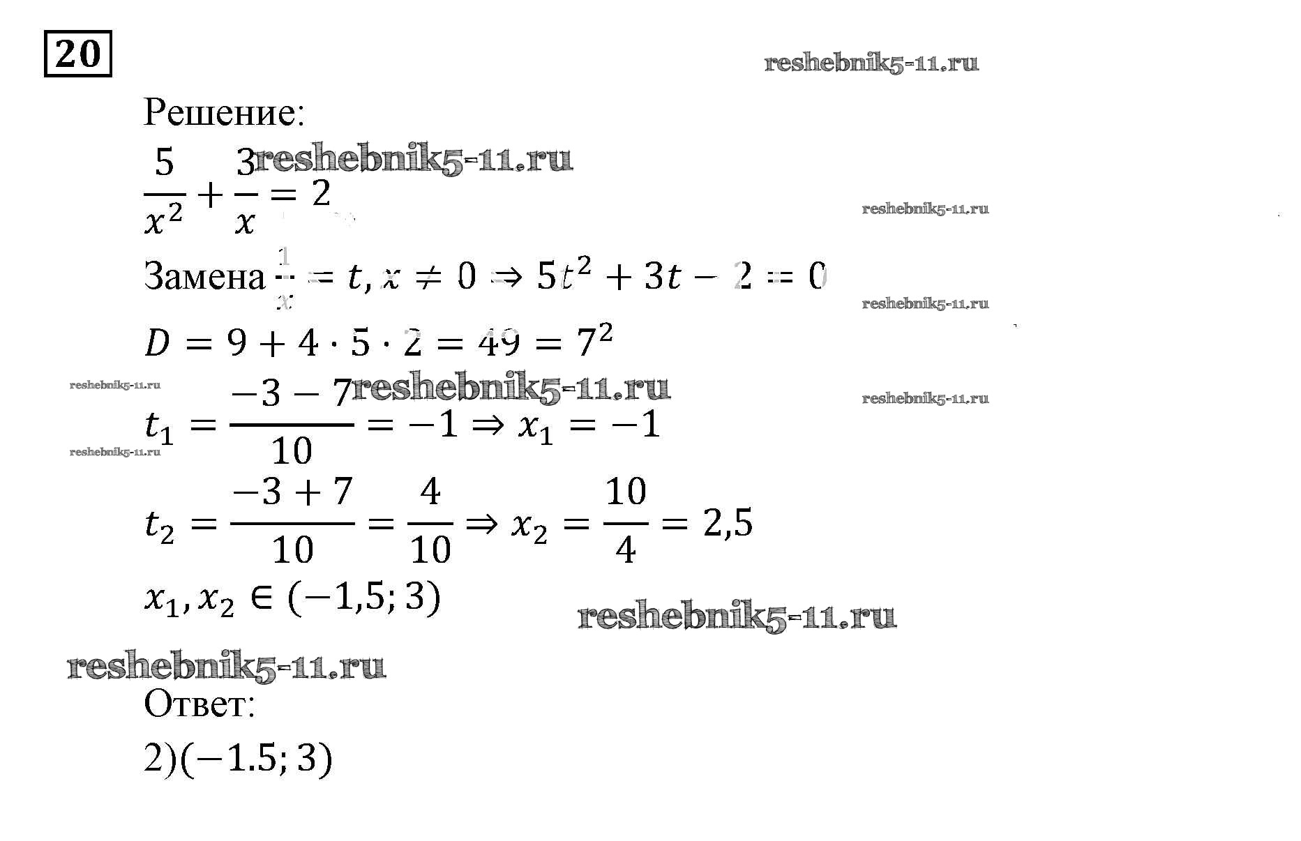 Готовая домашняя работа с ответами по Алгебре за 9 класс Мордкович, Александрова, Мишустина, Тульчинская, Семёнов Задачник Часть 2 Мнемозина 2010 ФГОС - Уравнения и системы уравнений 20