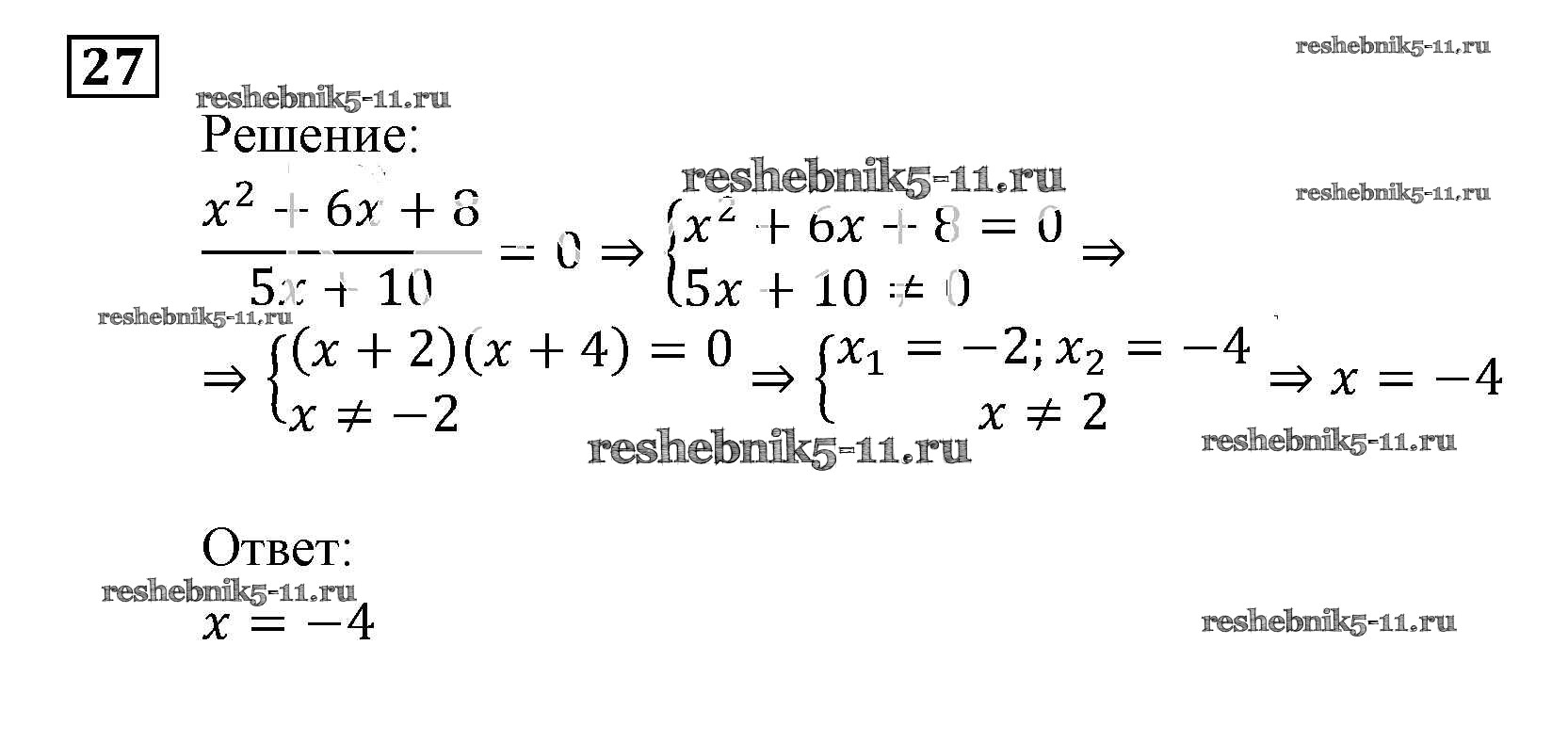 Готовая домашняя работа с ответами по Алгебре за 9 класс Мордкович, Александрова, Мишустина, Тульчинская, Семёнов Задачник Часть 2 Мнемозина 2010 ФГОС - Уравнения и системы уравнений 27