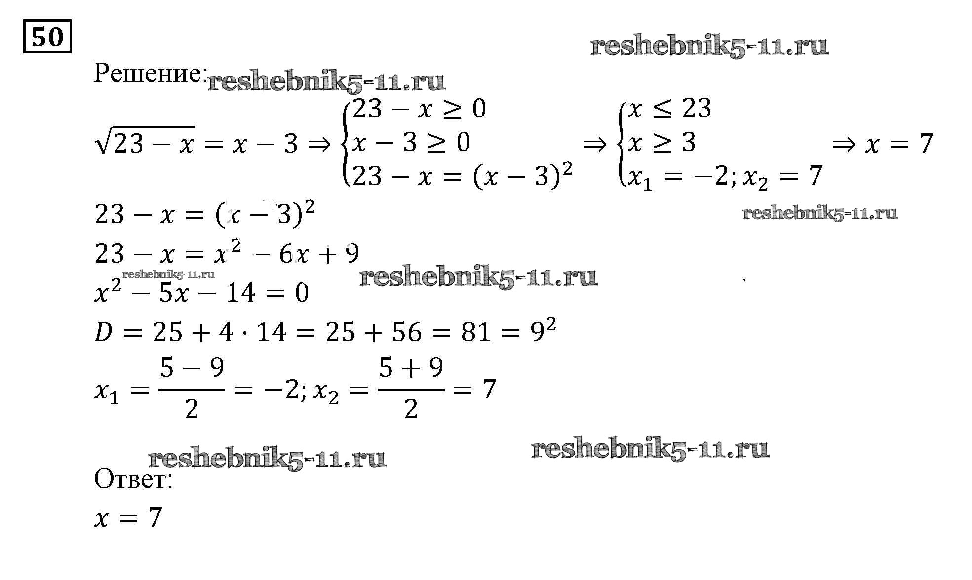 Готовая домашняя работа с ответами по Алгебре за 9 класс Мордкович, Александрова, Мишустина, Тульчинская, Семёнов Задачник Часть 2 Мнемозина 2010 ФГОС - Уравнения и системы уравнений 50