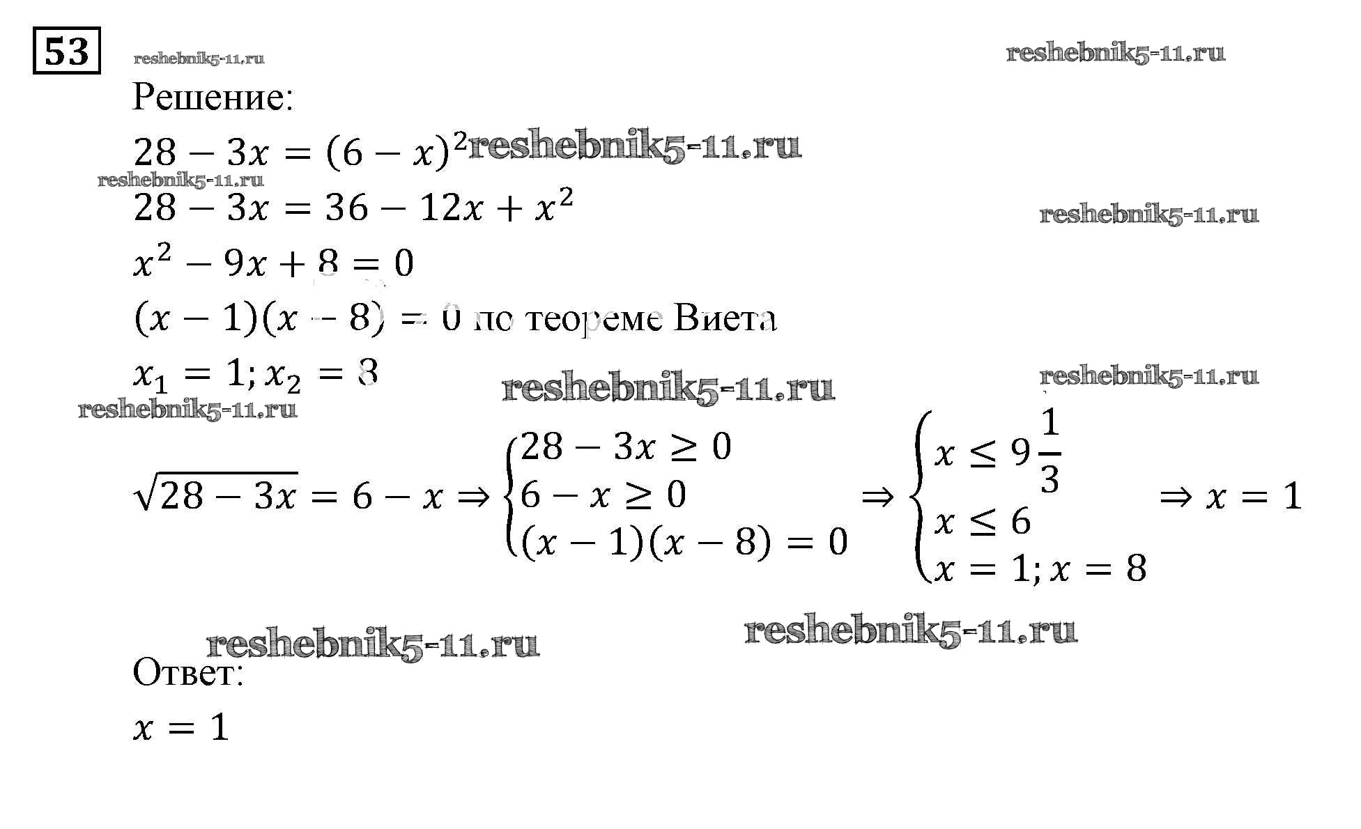 Готовая домашняя работа с ответами по Алгебре за 9 класс Мордкович, Александрова, Мишустина, Тульчинская, Семёнов Задачник Часть 2 Мнемозина 2010 ФГОС - Уравнения и системы уравнений 53