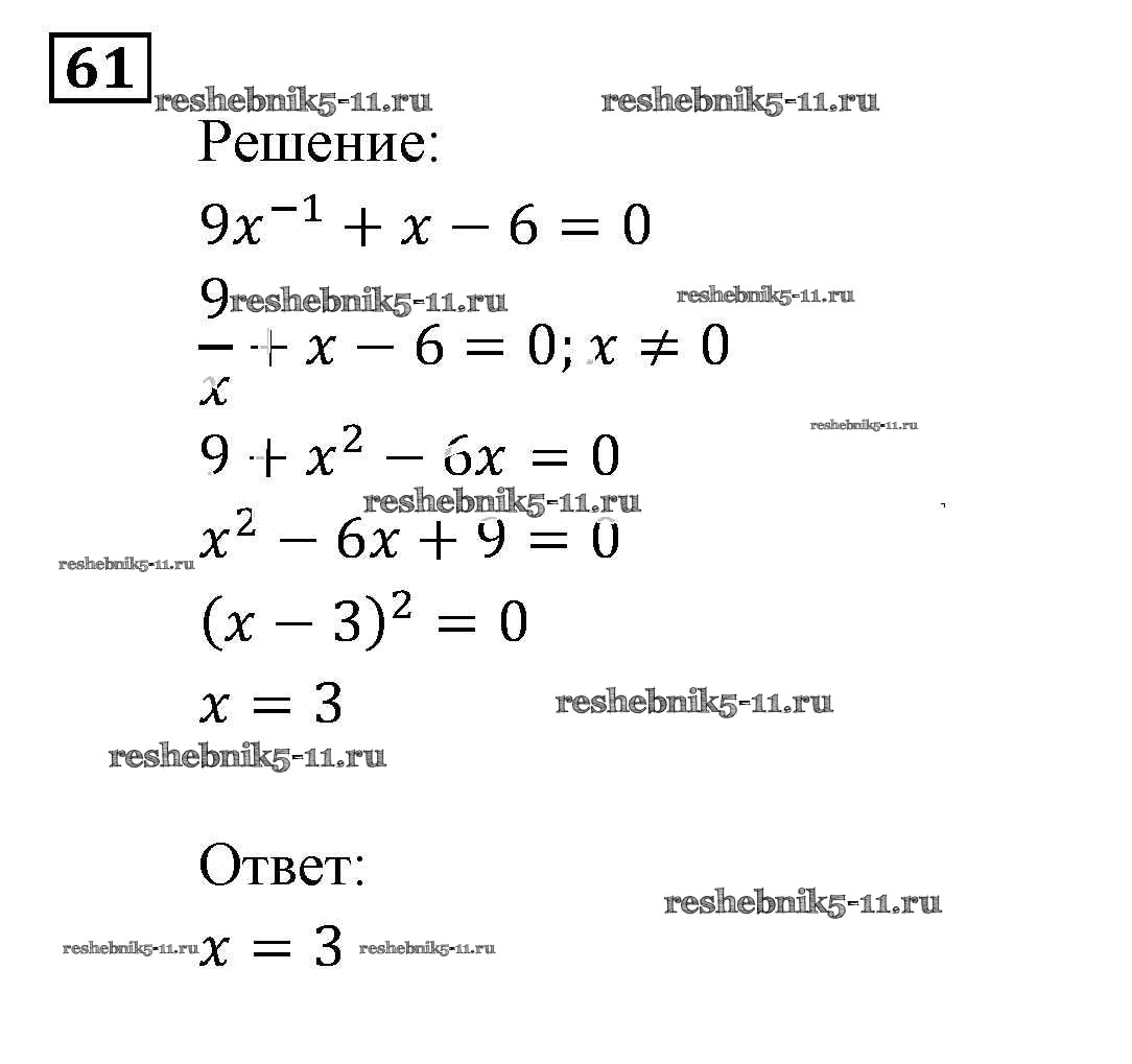 Алгебра за 9 класс Мордкович Задачник Мнемозина уравнения и системы уравнений 61