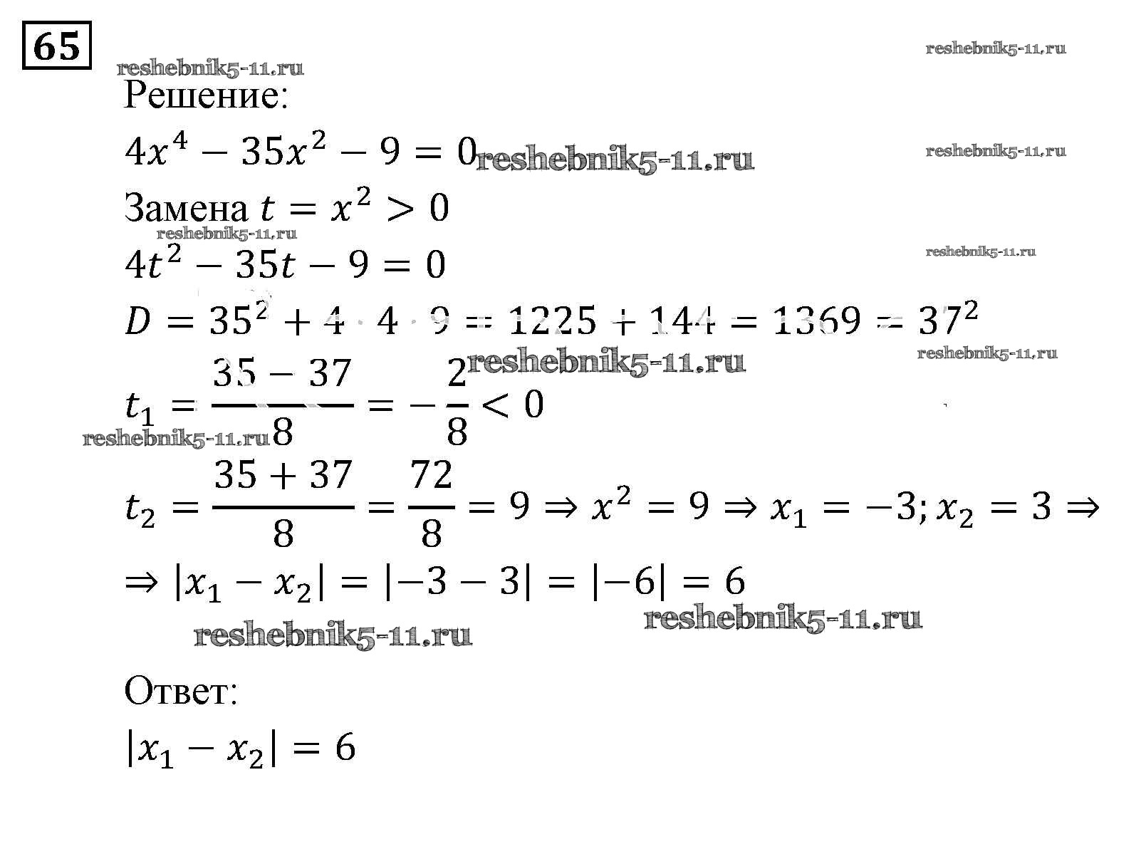 Готовая домашняя работа с ответами по Алгебре за 9 класс Мордкович, Александрова, Мишустина, Тульчинская, Семёнов Задачник Часть 2 Мнемозина 2010 ФГОС - Уравнения и системы уравнений 65
