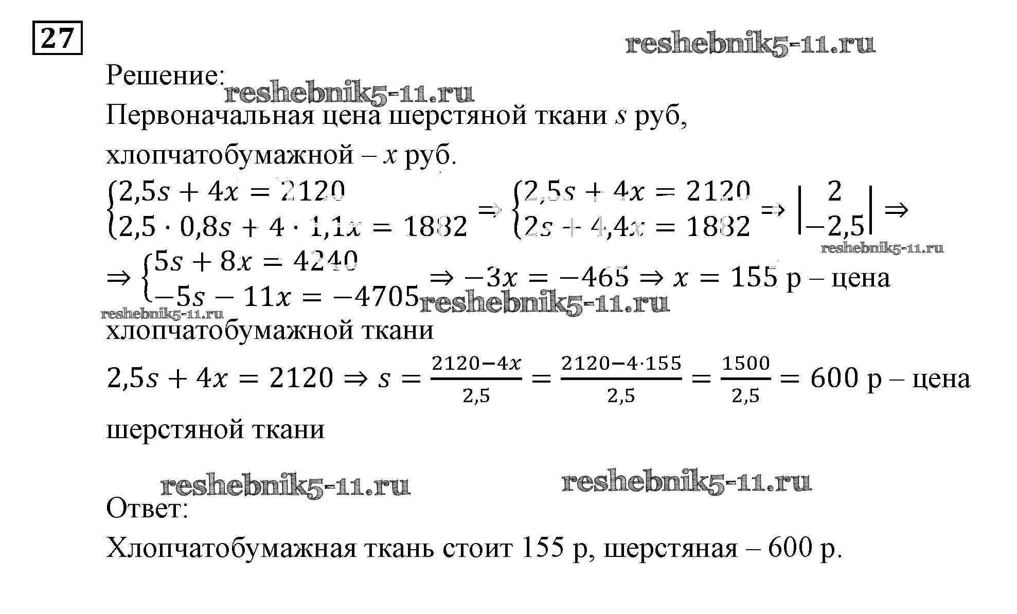 Решебник №1 / повторение / задачи на составление уравнений или систем уравнений / 27