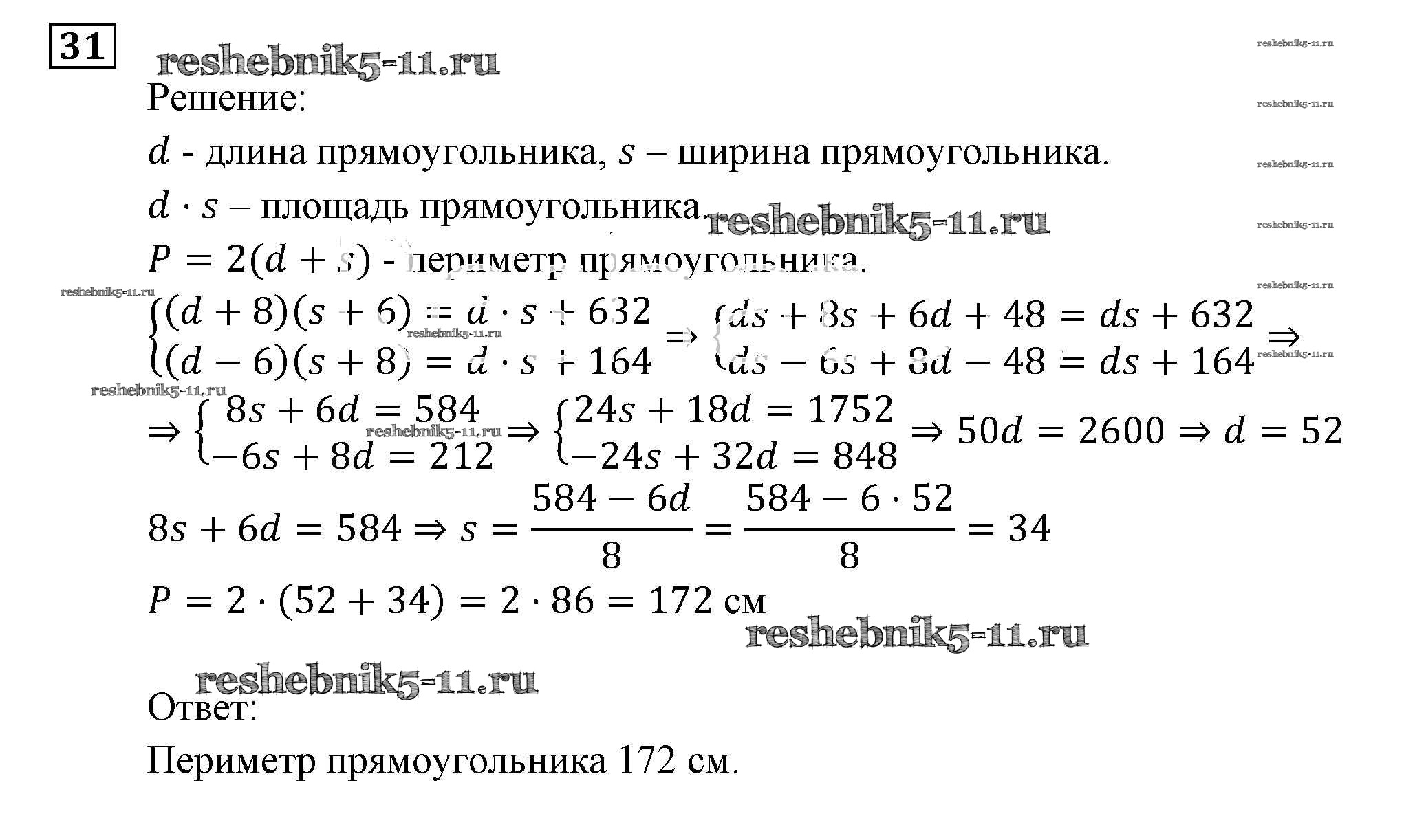 Решебник №1 / повторение / задачи на составление уравнений или систем уравнений / 31