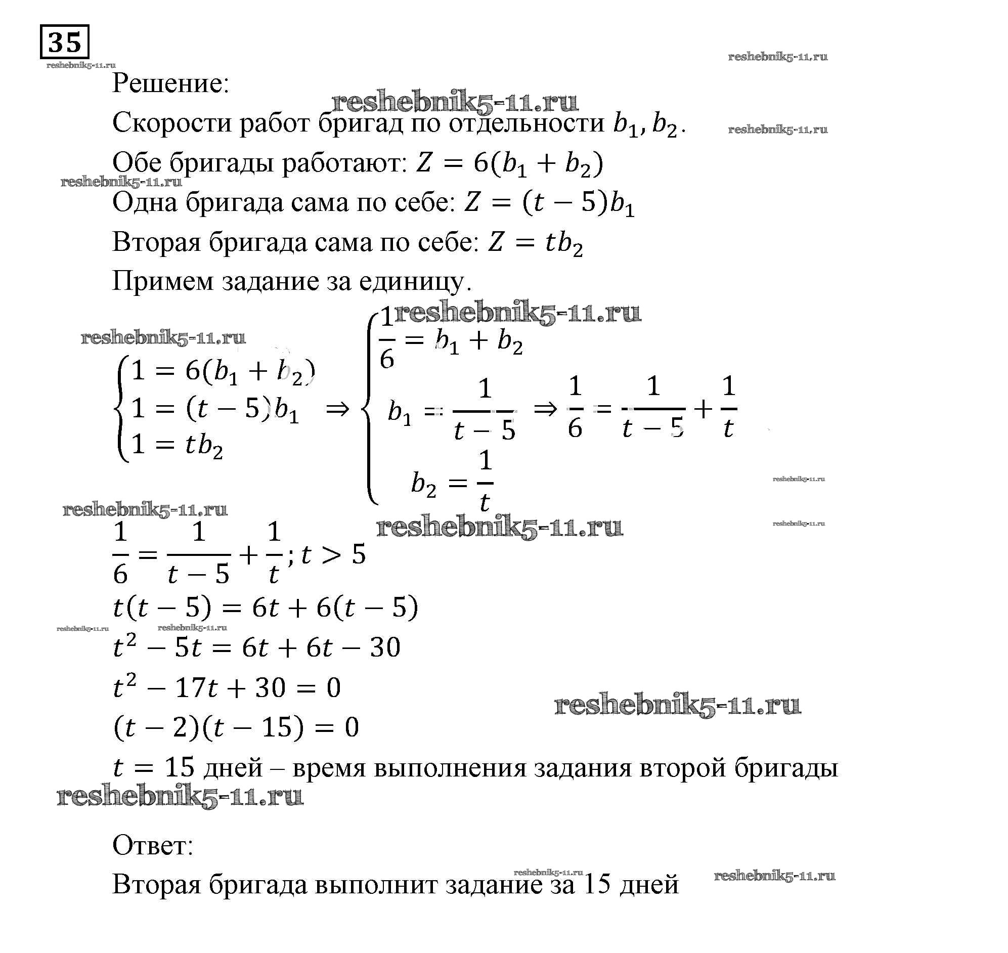 Готовая домашняя работа с ответами по Алгебре за 9 класс Мордкович, Александрова, Мишустина, Тульчинская, Семёнов Задачник Часть 2 Мнемозина 2010 ФГОС - Задачи на составление уравнений или систем уравнений 35