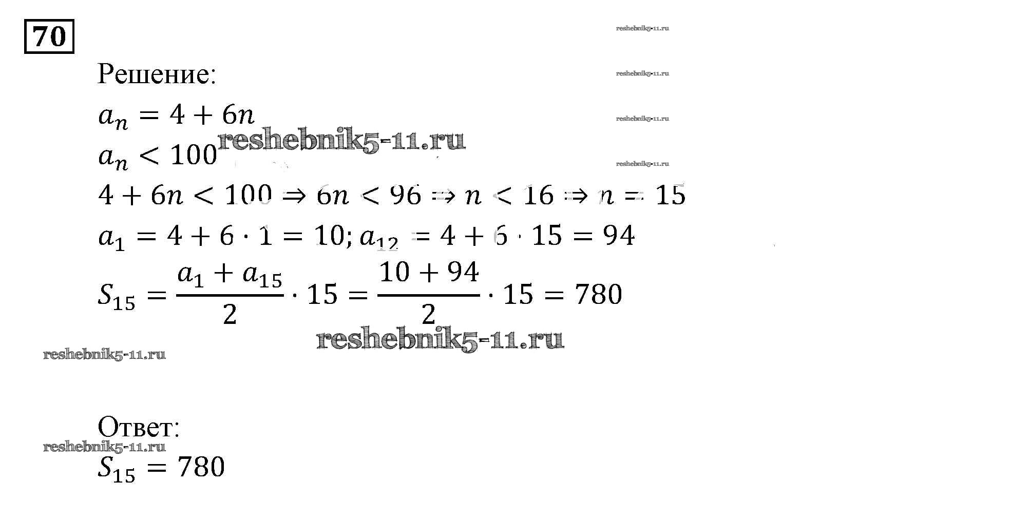 Решебник №2 / повторение / арифметическая и геометрическая прогрессии / 70