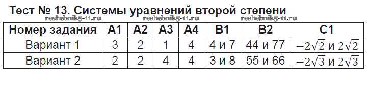 Готовая домашняя работа с ответами по Алгебре за 9 класс Мартышова Контрольно-измерительные материалы (КИМ) ВАКО 2015 ФГОС - Тесты Тест №13. Системы уравнений второй степени