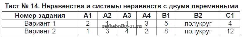 Готовая домашняя работа с ответами по Алгебре за 9 класс Мартышова Контрольно-измерительные материалы (КИМ) ВАКО 2015 ФГОС - Тесты Тест №14. Неравенства и системы неравенств с двумя переменными
