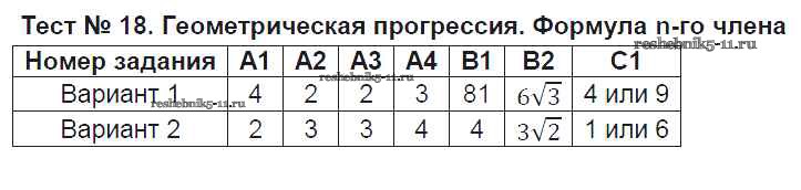 Готовая домашняя работа с ответами по Алгебре за 9 класс Мартышова Контрольно-измерительные материалы (КИМ) ВАКО 2015 ФГОС - Тесты Тест №18. Геометрическая прогрессия. Формула n-го члена