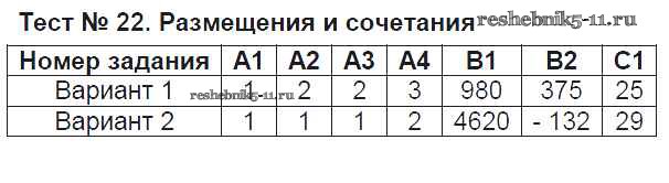 Тест №22. Размещения и сочетания