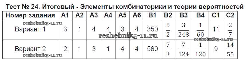 Тест №24. Итоговый - Элементы комбинаторики и теории вероятностей