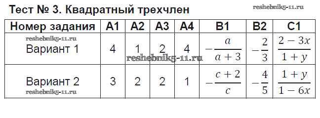 Готовая домашняя работа с ответами по Алгебре за 9 класс Мартышова Контрольно-измерительные материалы (КИМ) ВАКО 2015 ФГОС - Тесты Тест №3. Квадратный трехчлен