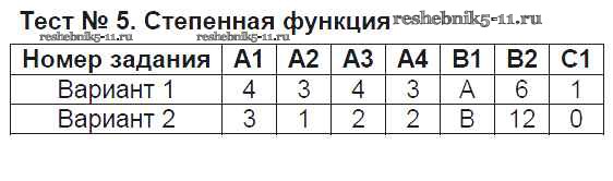 Готовая домашняя работа с ответами по Алгебре за 9 класс Мартышова Контрольно-измерительные материалы (КИМ) ВАКО 2015 ФГОС - Тесты Тест №5. Степенная функция