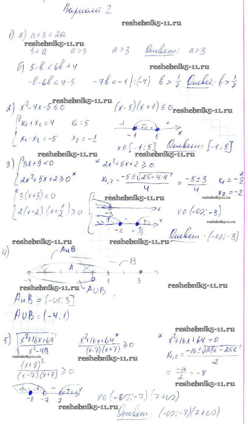 Готовая домашняя работа с ответами по Алгебре за 9 класс Попов Контрольные и самостоятельные работы УМК Экзамен 2011 ФГОС - КР-1. Рациональные неравенства и их системы Вариант 2