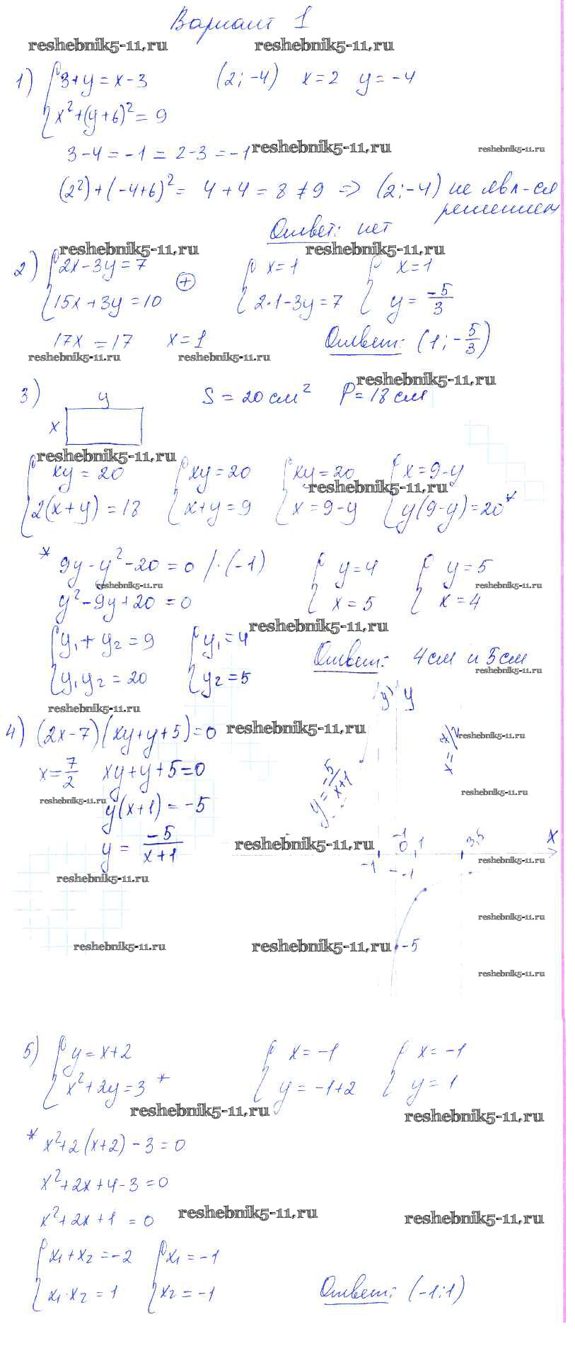 Готовая домашняя работа с ответами по Алгебре за 9 класс Попов Контрольные и самостоятельные работы УМК Экзамен 2011 ФГОС - КР-2. Системы уравнений Вариант 1