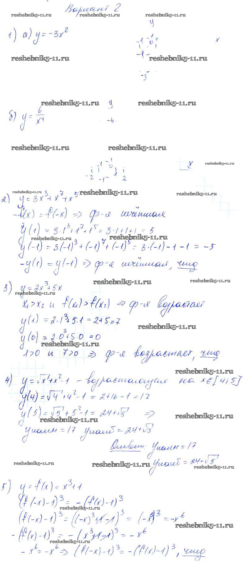 Готовая домашняя работа с ответами по Алгебре за 9 класс Попов Контрольные и самостоятельные работы УМК Экзамен 2011 ФГОС - КР-3. Числовые функции Вариант 2