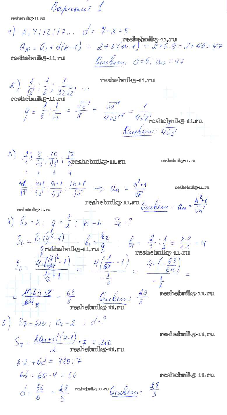 Готовая домашняя работа с ответами по Алгебре за 9 класс Попов Контрольные и самостоятельные работы УМК Экзамен 2011 ФГОС - КР-4. Прогрессии Вариант 1