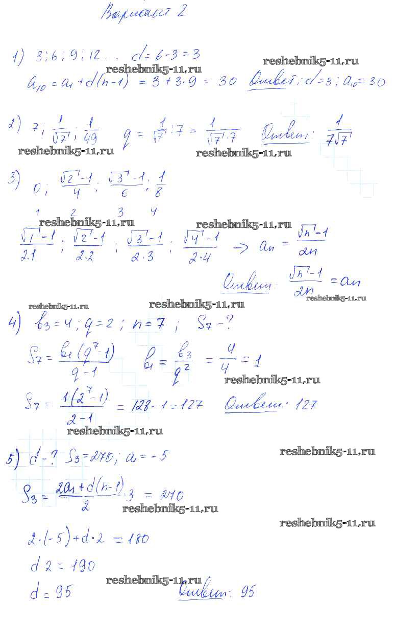 Готовая домашняя работа с ответами по Алгебре за 9 класс Попов Контрольные и самостоятельные работы УМК Экзамен 2011 ФГОС - КР-4. Прогрессии Вариант 2