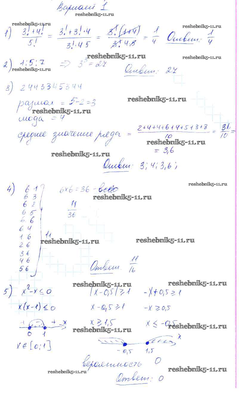 Готовая домашняя работа с ответами по Алгебре за 9 класс Попов Контрольные и самостоятельные работы УМК Экзамен 2011 ФГОС - КР-5. Элементы комбинаторики статистики Вариант 1