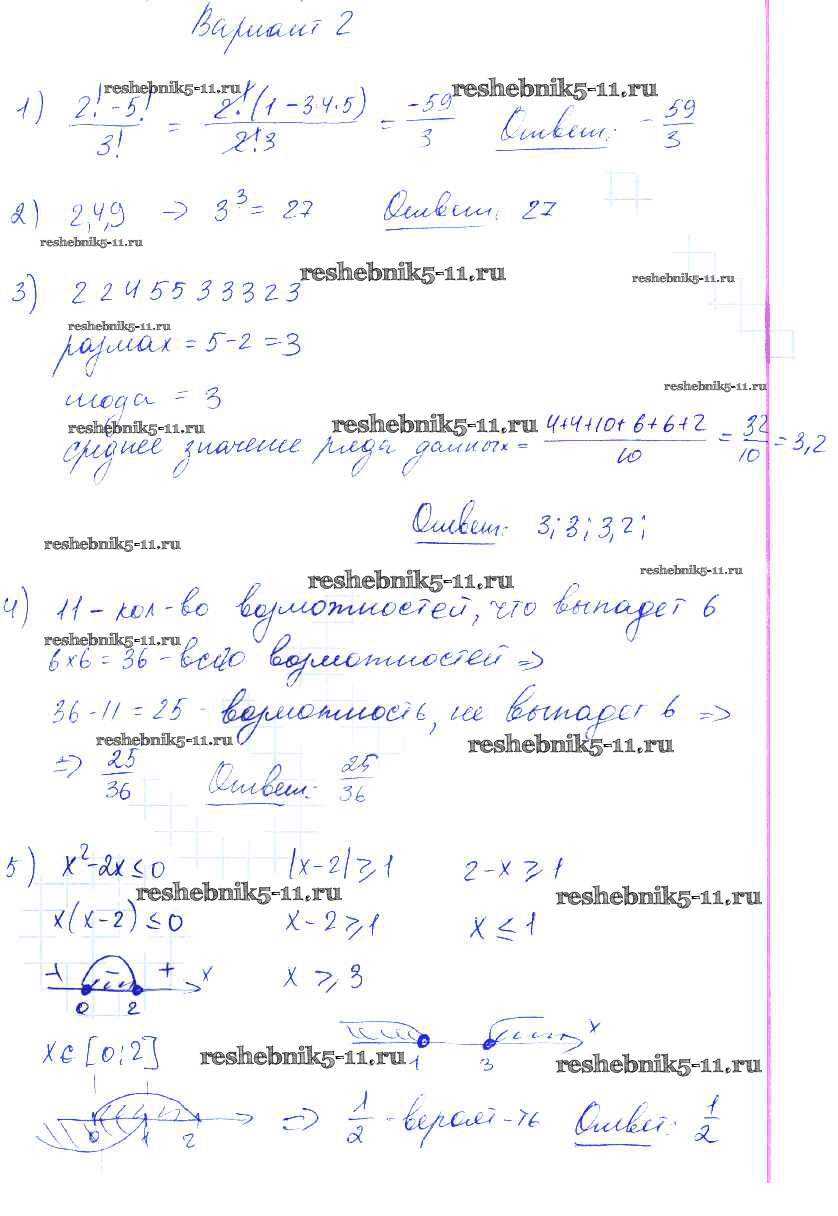 Готовая домашняя работа с ответами по Алгебре за 9 класс Попов Контрольные и самостоятельные работы УМК Экзамен 2011 ФГОС - КР-5. Элементы комбинаторики статистики Вариант 2