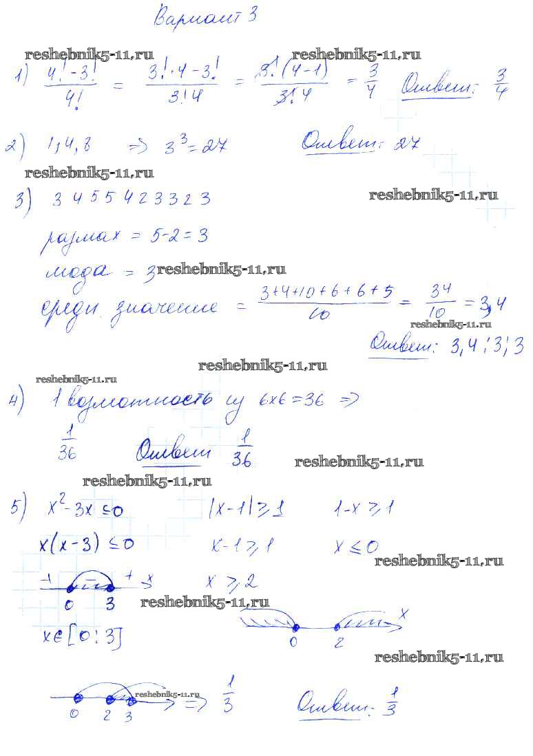 Готовая домашняя работа с ответами по Алгебре за 9 класс Попов Контрольные и самостоятельные работы УМК Экзамен 2011 ФГОС - КР-5. Элементы комбинаторики статистики Вариант 3
