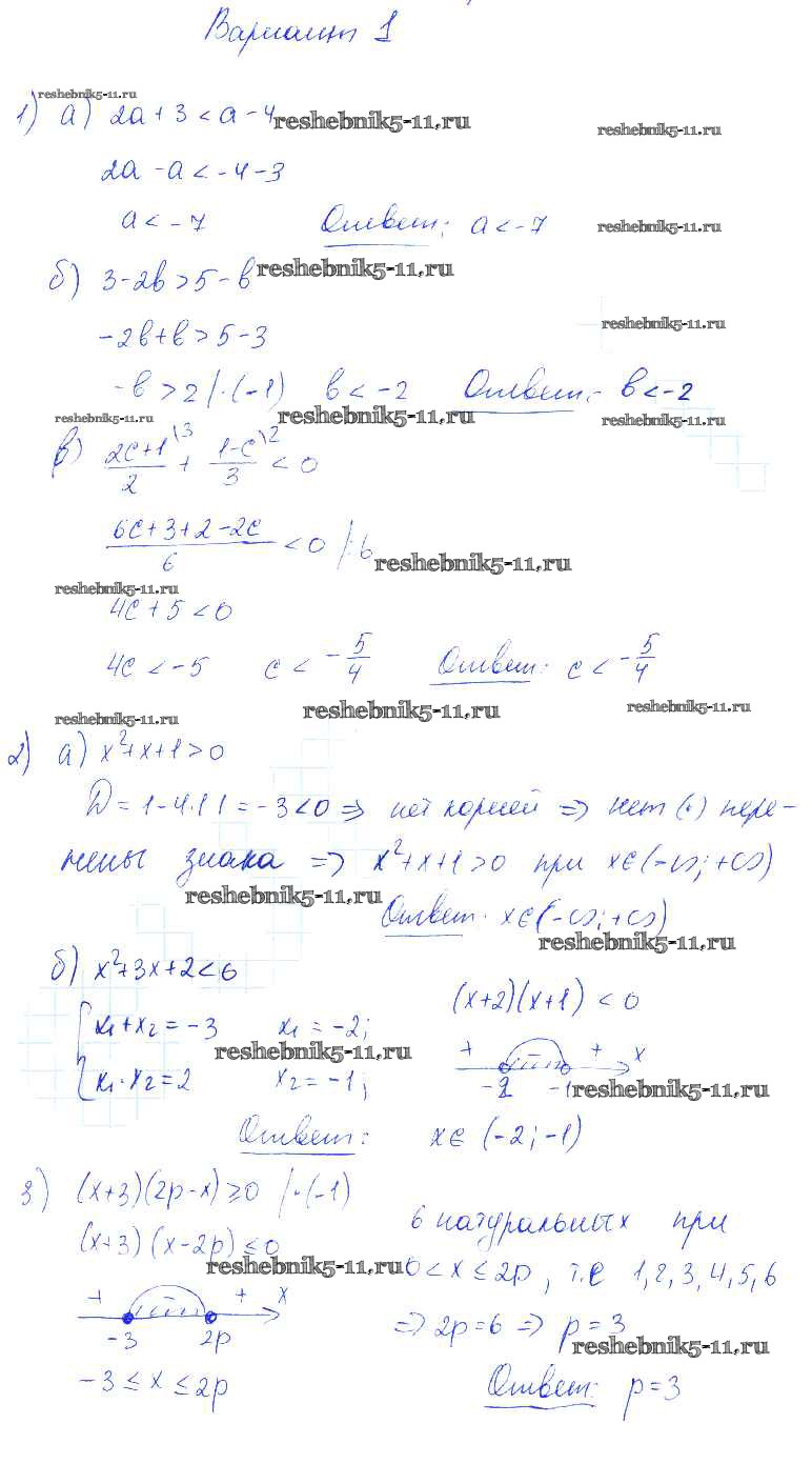 Готовая домашняя работа с ответами по Алгебре за 9 класс Попов Контрольные и самостоятельные работы УМК Экзамен 2011 ФГОС - СР-1. Линейные и квадратные неравенства Вариант 1