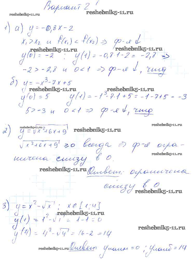 Готовая домашняя работа с ответами по Алгебре за 9 класс Попов Контрольные и самостоятельные работы УМК Экзамен 2011 ФГОС - СР-11. Свойства функций Вариант 2