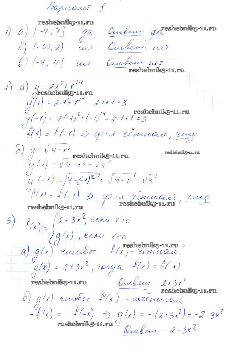Готовая домашняя работа с ответами по Алгебре за 9 класс Попов Контрольные и самостоятельные работы УМК Экзамен 2011 ФГОС - СР-12. Четные и нечетные функции Вариант 1