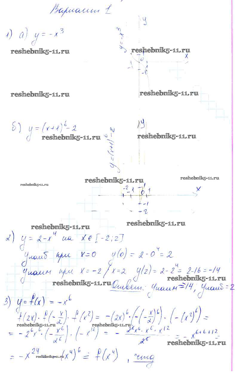 Готовая домашняя работа с ответами по Алгебре за 9 класс Попов Контрольные и самостоятельные работы УМК Экзамен 2011 ФГОС - СР-13. Функции y=xn(n є N) их свойства и графики Вариант 1
