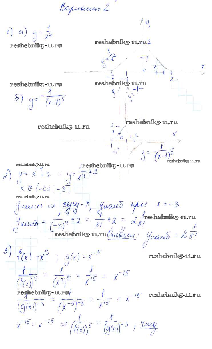 Готовая домашняя работа с ответами по Алгебре за 9 класс Попов Контрольные и самостоятельные работы УМК Экзамен 2011 ФГОС - СР-14. Функции y=x-n(n є N) их свойства и графики Вариант 2