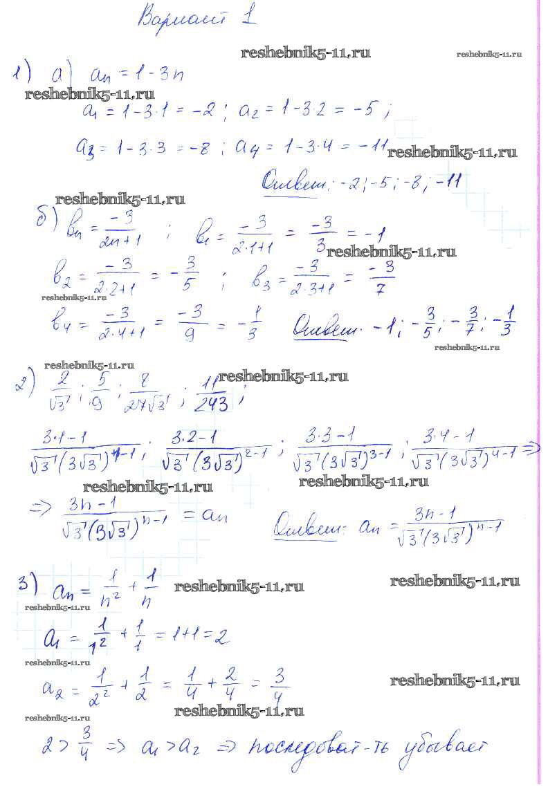 Готовая домашняя работа с ответами по Алгебре за 9 класс Попов Контрольные и самостоятельные работы УМК Экзамен 2011 ФГОС - СР-16. Числовые последовательности Вариант 1