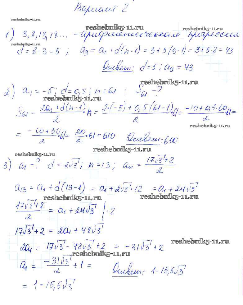 Готовая домашняя работа с ответами по Алгебре за 9 класс Попов Контрольные и самостоятельные работы УМК Экзамен 2011 ФГОС - СР-17. Арифметическая прогрессия Вариант 2