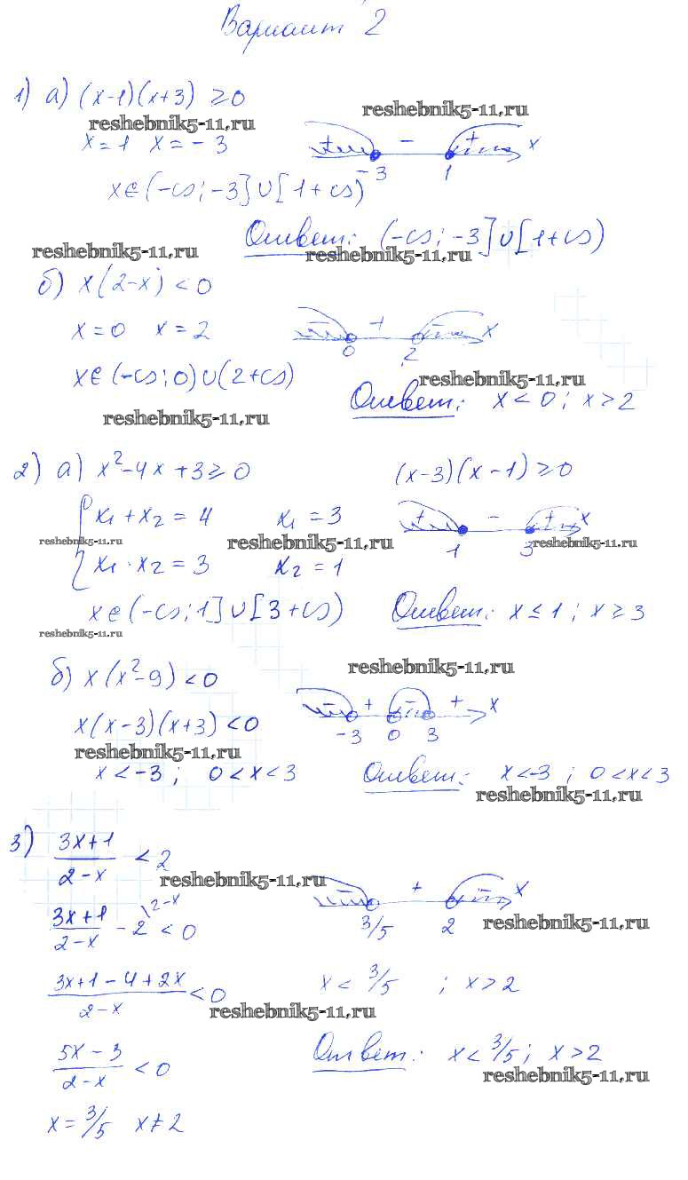 Готовая домашняя работа с ответами по Алгебре за 9 класс Попов Контрольные и самостоятельные работы УМК Экзамен 2011 ФГОС - СР-2. Рациональные неравенства Вариант 2