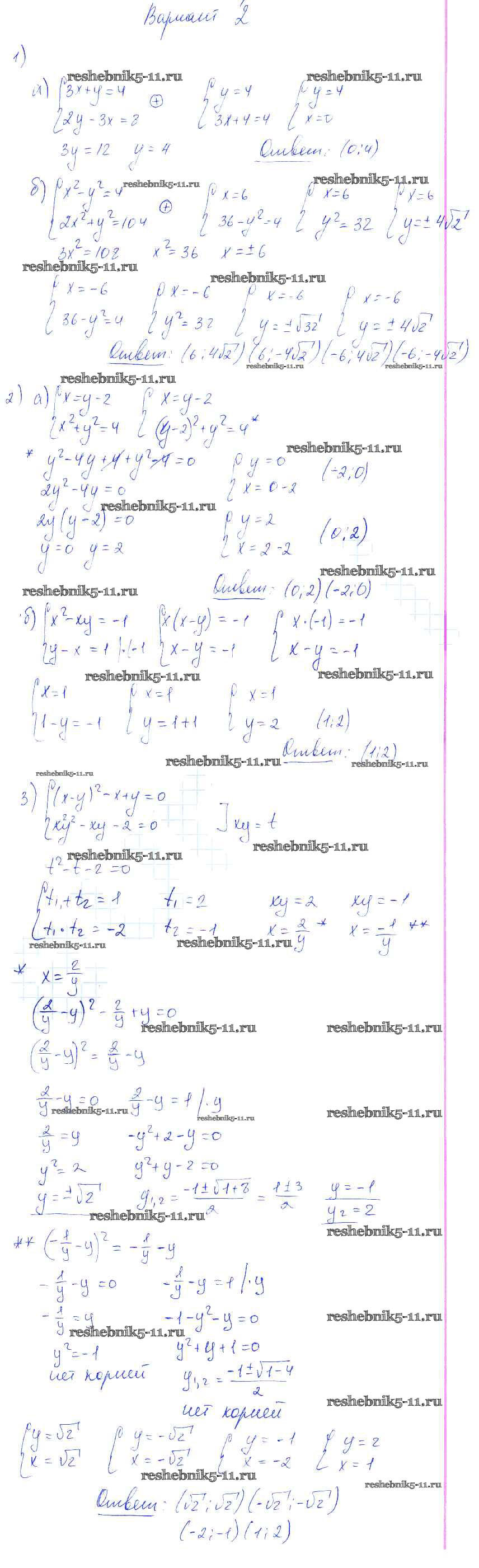 Готовая домашняя работа с ответами по Алгебре за 9 класс Попов Контрольные и самостоятельные работы УМК Экзамен 2011 ФГОС - СР-7. Методы решения систем уравнений Вариант 2