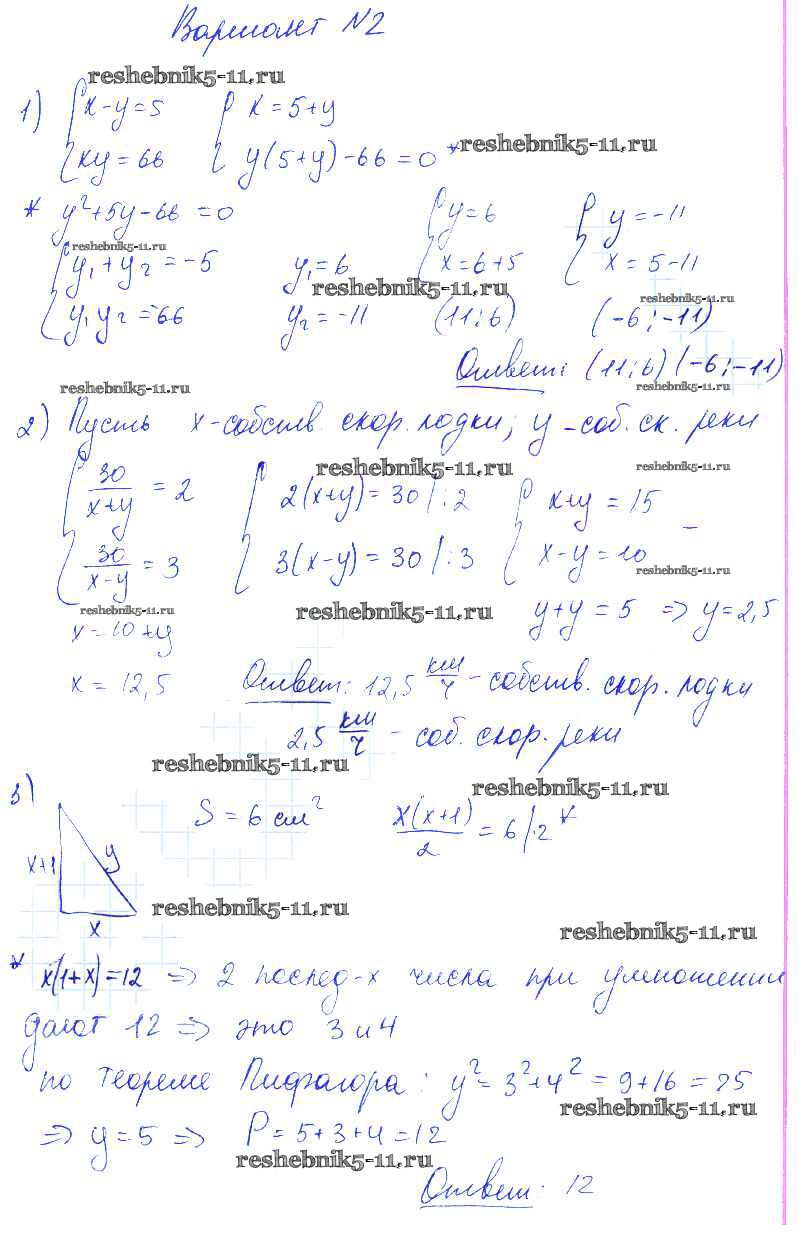 Готовая домашняя работа с ответами по Алгебре за 9 класс Попов Контрольные и самостоятельные работы УМК Экзамен 2011 ФГОС - СР-8. Системы уравнений как математические модели реальных ситуаций Вариант 2