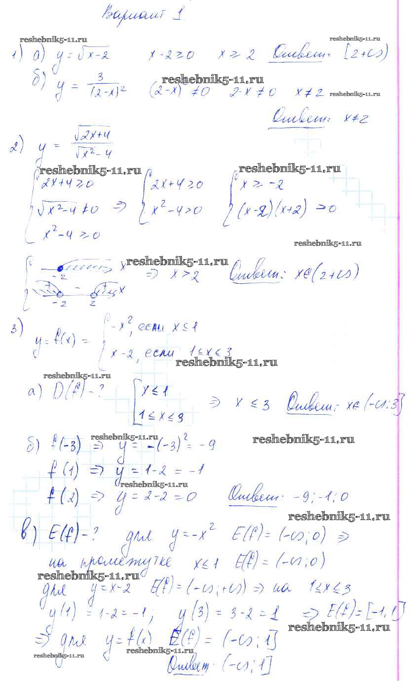 Готовая домашняя работа с ответами по Алгебре за 9 класс Попов Контрольные и самостоятельные работы УМК Экзамен 2011 ФГОС - СР-9. Определение числовой функции Вариант 1