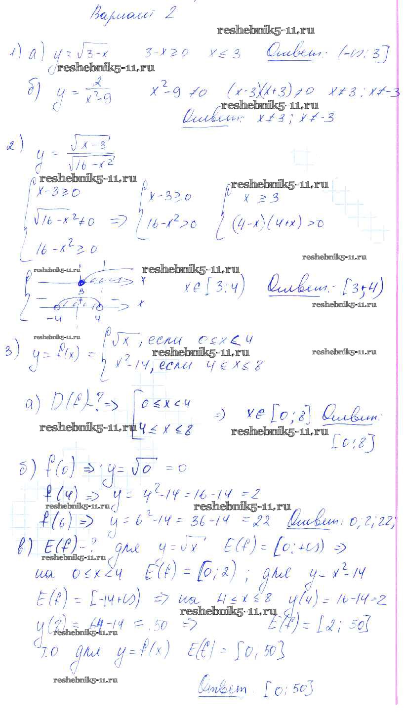 Готовая домашняя работа с ответами по Алгебре за 9 класс Попов Контрольные и самостоятельные работы УМК Экзамен 2011 ФГОС - СР-9. Определение числовой функции Вариант 2
