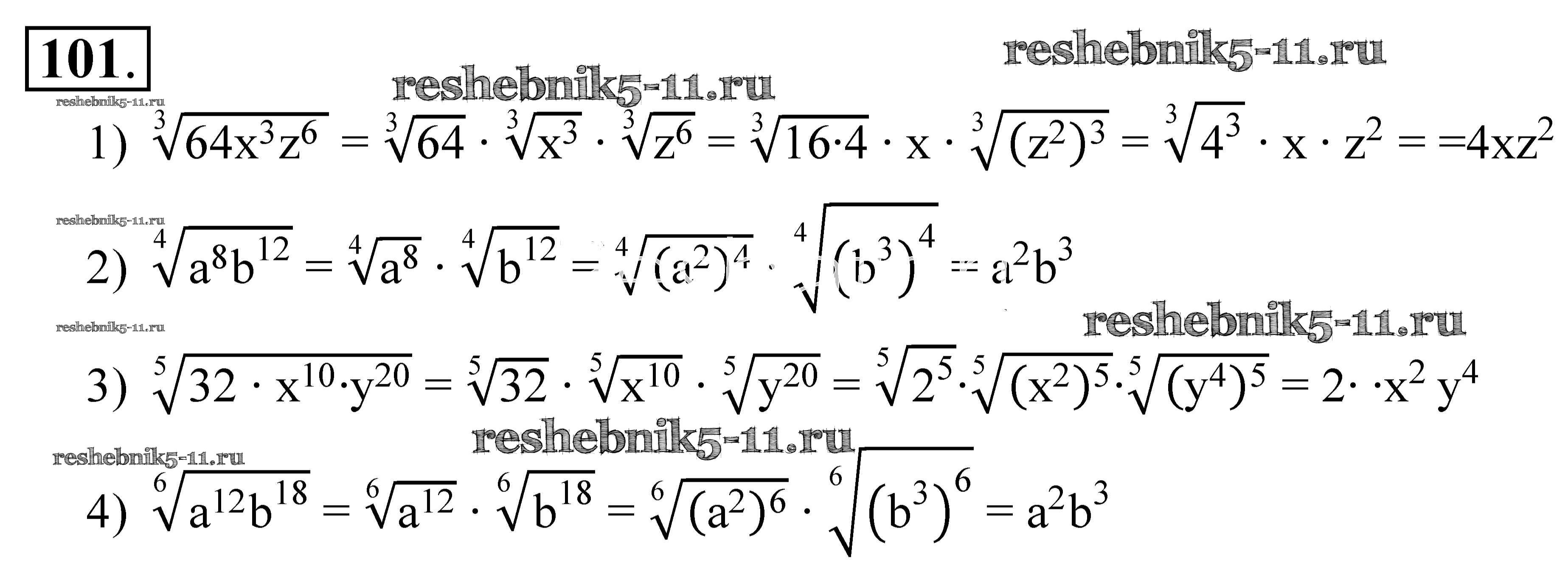 Готовая домашняя работа с ответами по Алгебре за 9 класс Алимов, Колягин, Сидоров Учебник Просвещение 2014 ФГОС - Упражнения 101