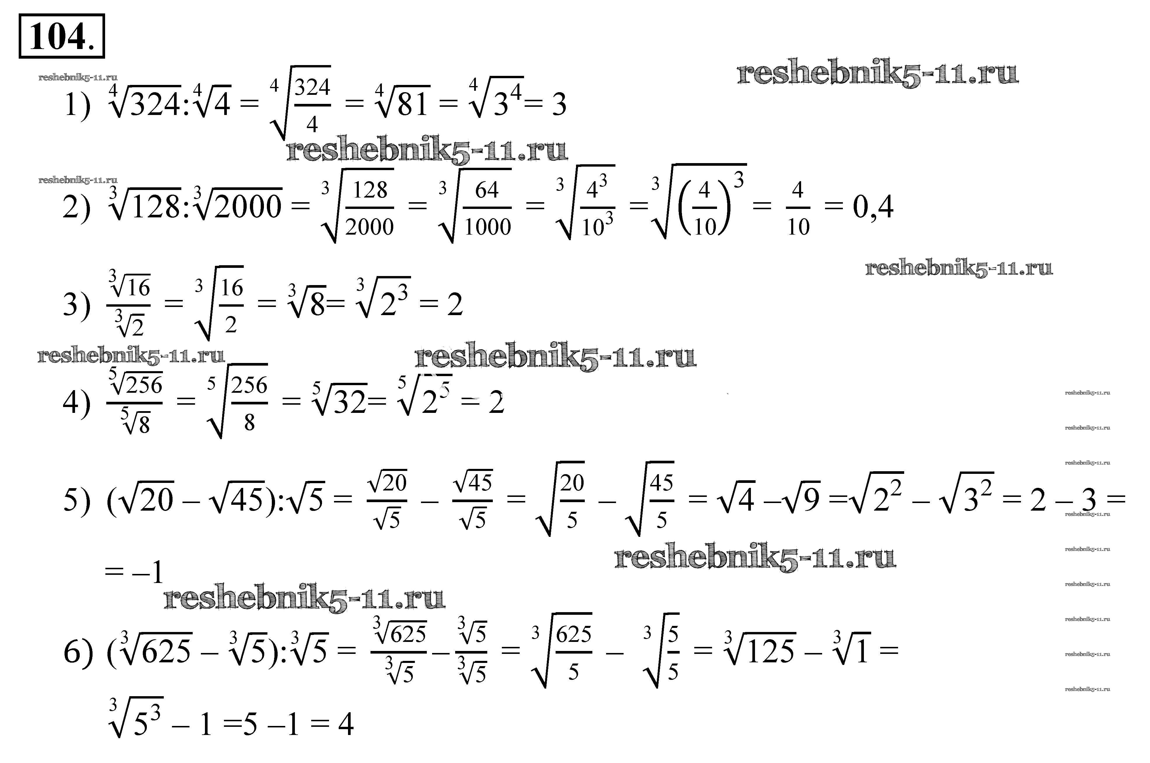 Готовая домашняя работа с ответами по Алгебре за 9 класс Алимов, Колягин, Сидоров Учебник Просвещение 2014 ФГОС - Упражнения 104