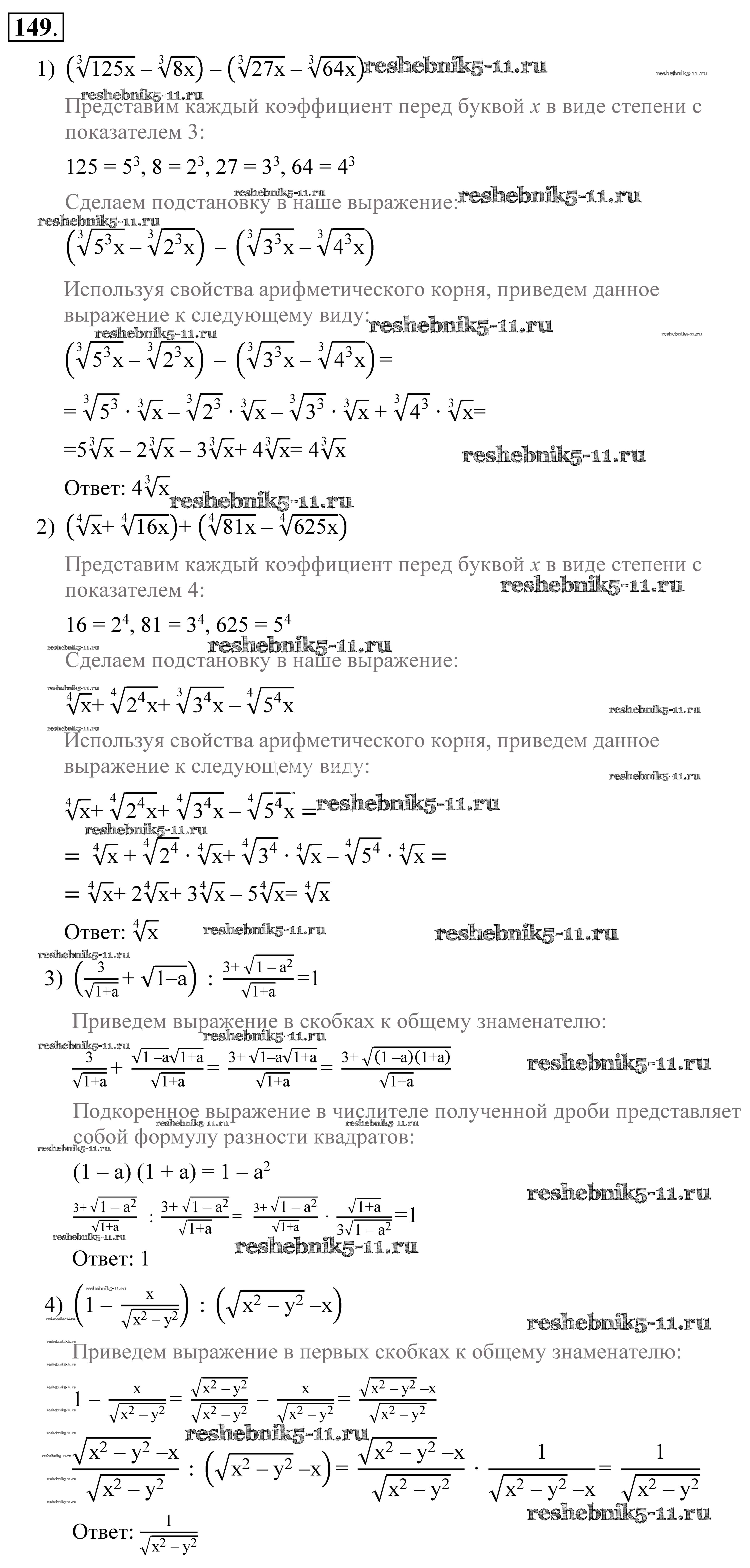 Готовая домашняя работа с ответами по Алгебре за 9 класс Алимов, Колягин, Сидоров Учебник Просвещение 2014 ФГОС - Упражнения 149