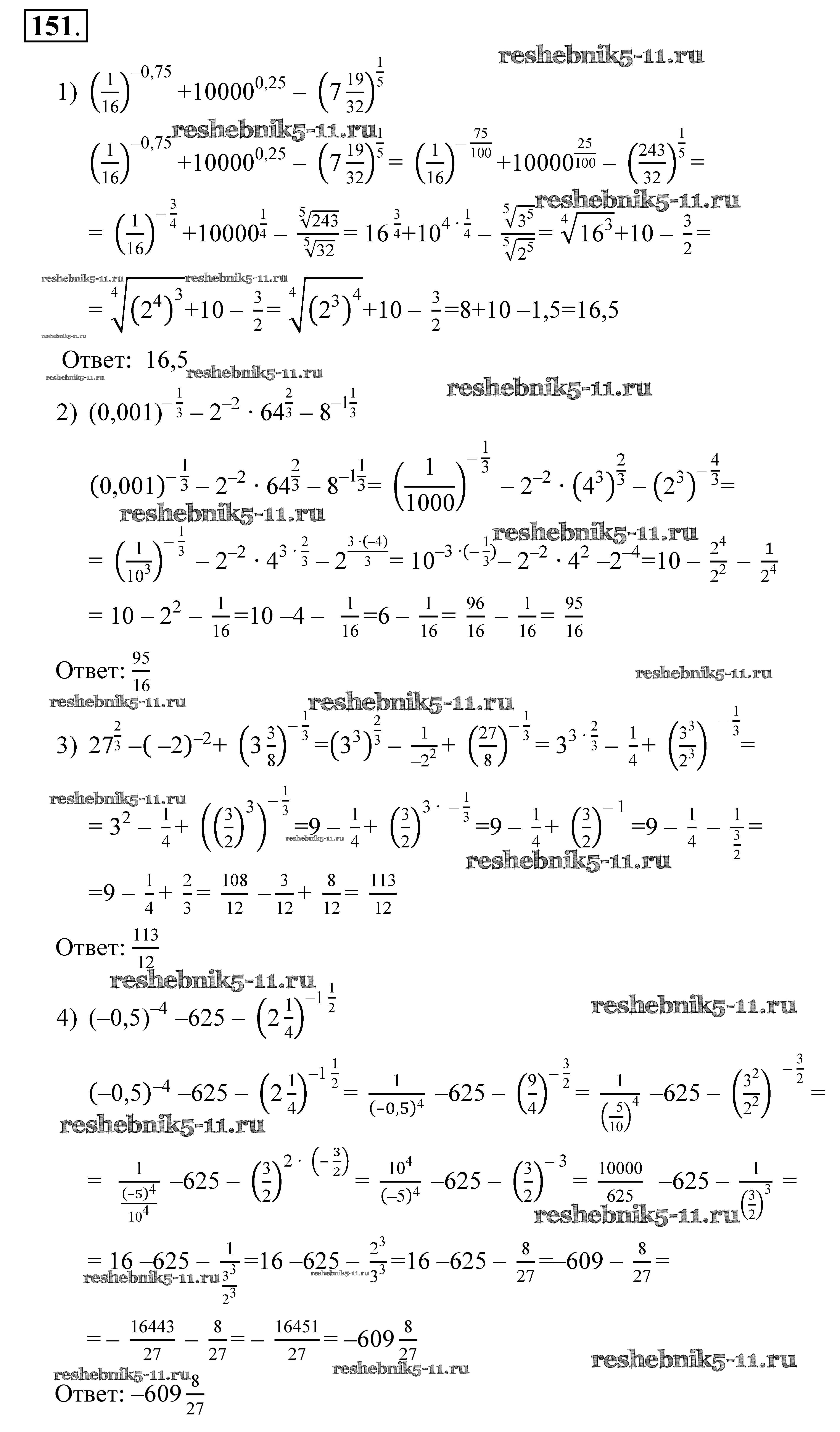 Готовая домашняя работа с ответами по Алгебре за 9 класс Алимов, Колягин, Сидоров Учебник Просвещение 2014 ФГОС - Упражнения 151