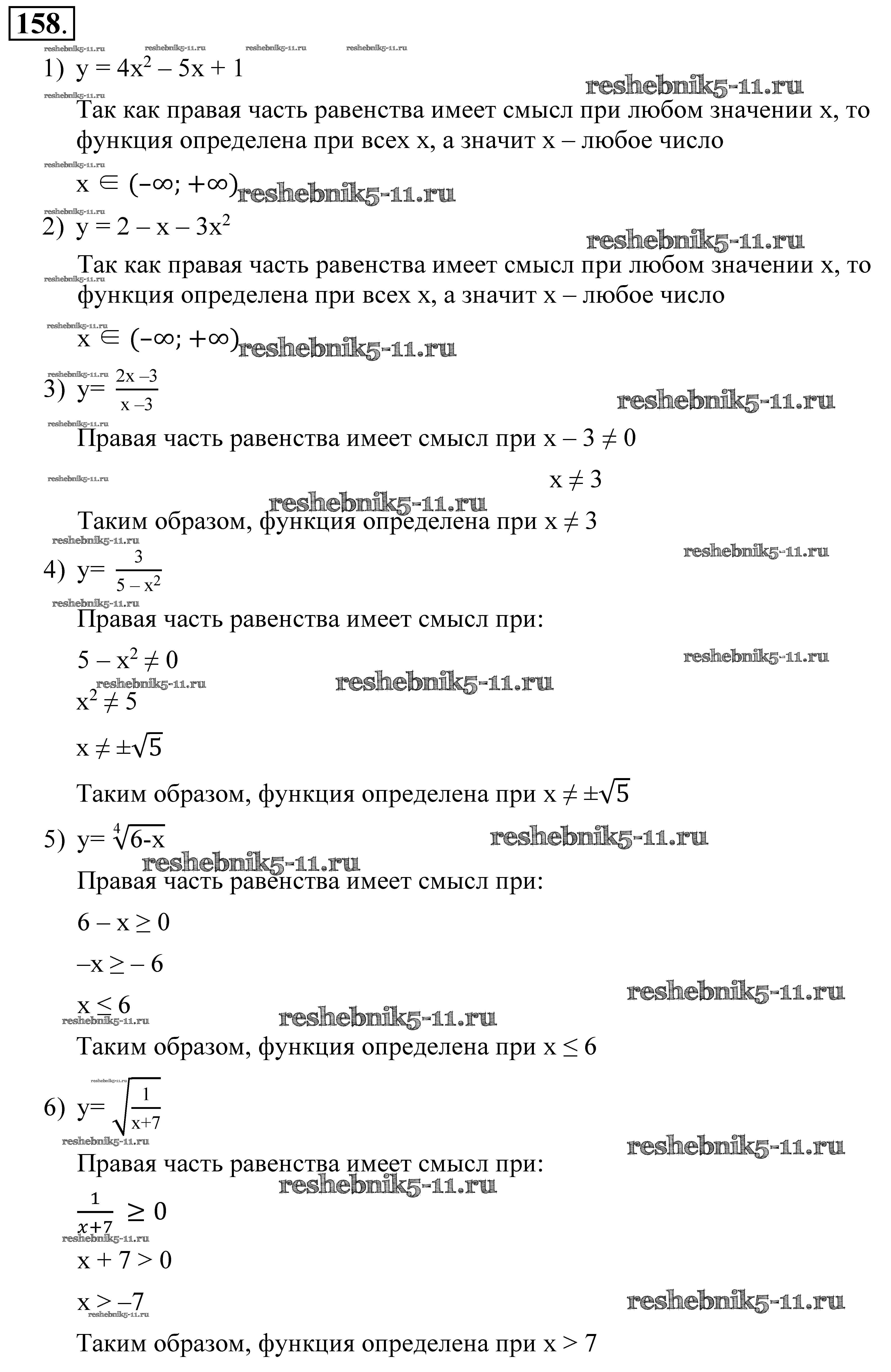 Алгебра за 9 класс Алимов Учебник Просвещение упражнение 158