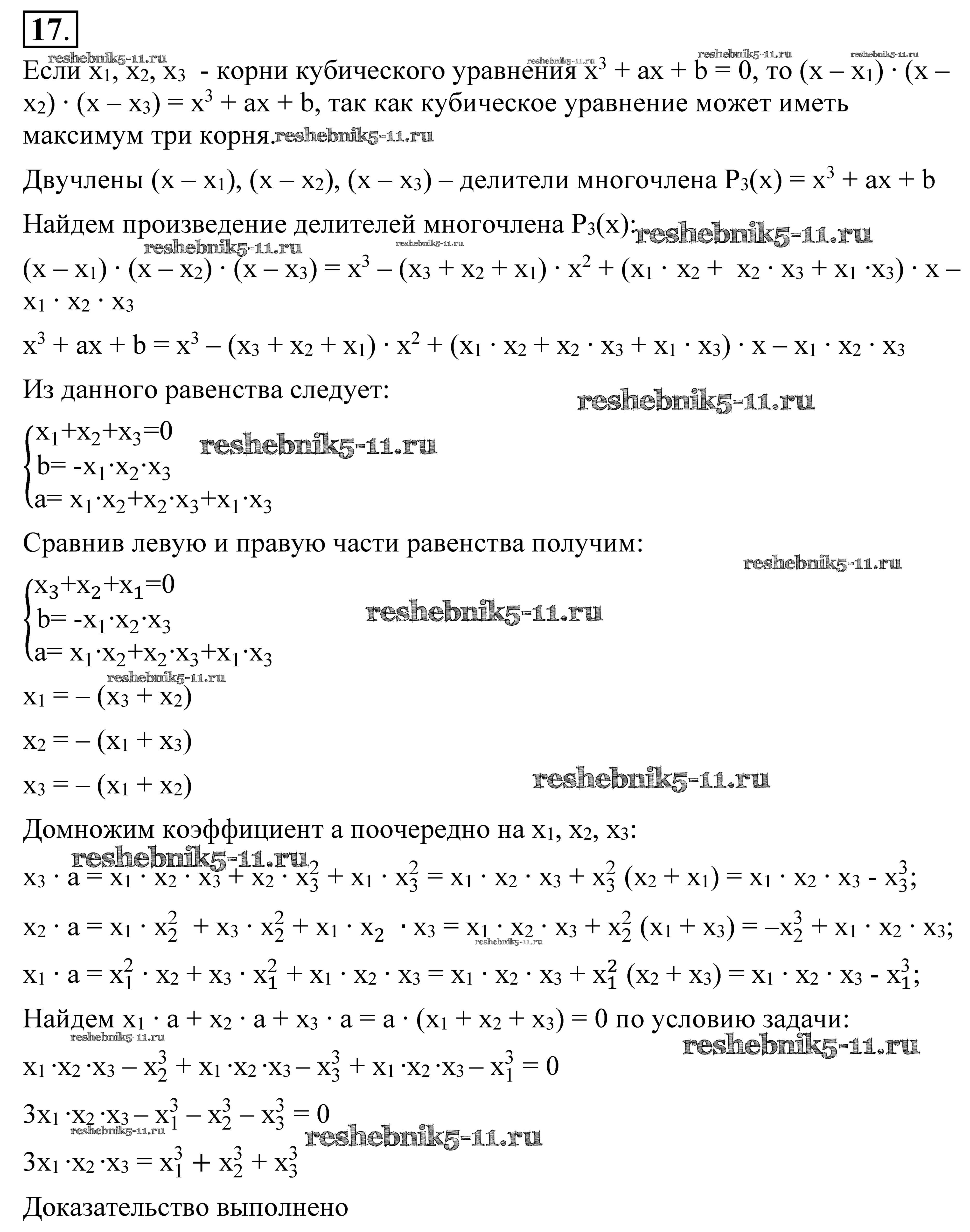 Готовая домашняя работа с ответами по Алгебре за 9 класс Алимов, Колягин, Сидоров Учебник Просвещение 2014 ФГОС - Упражнения 17