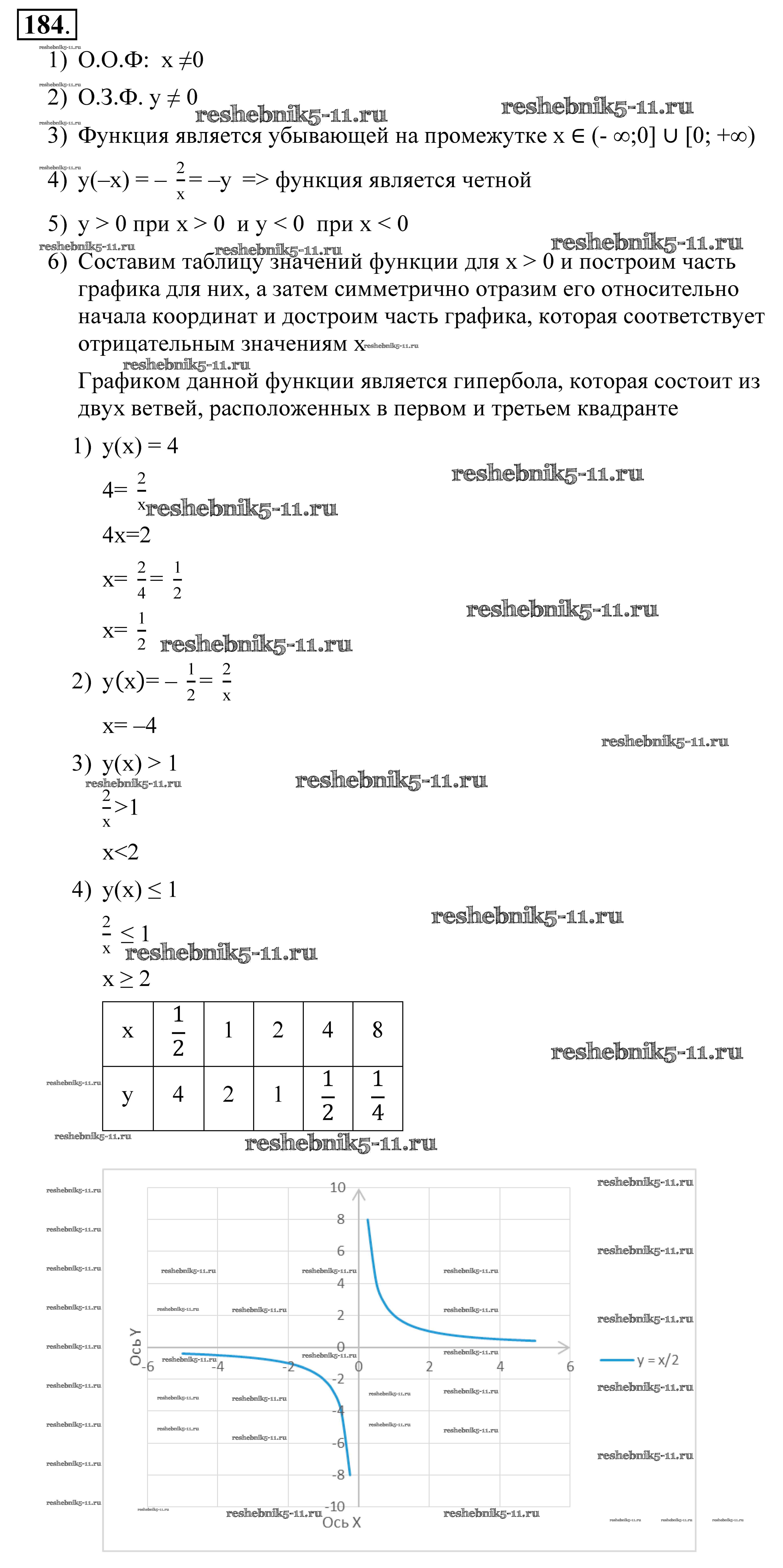 Готовая домашняя работа с ответами по Алгебре за 9 класс Алимов, Колягин, Сидоров Учебник Просвещение 2014 ФГОС - Упражнения 184