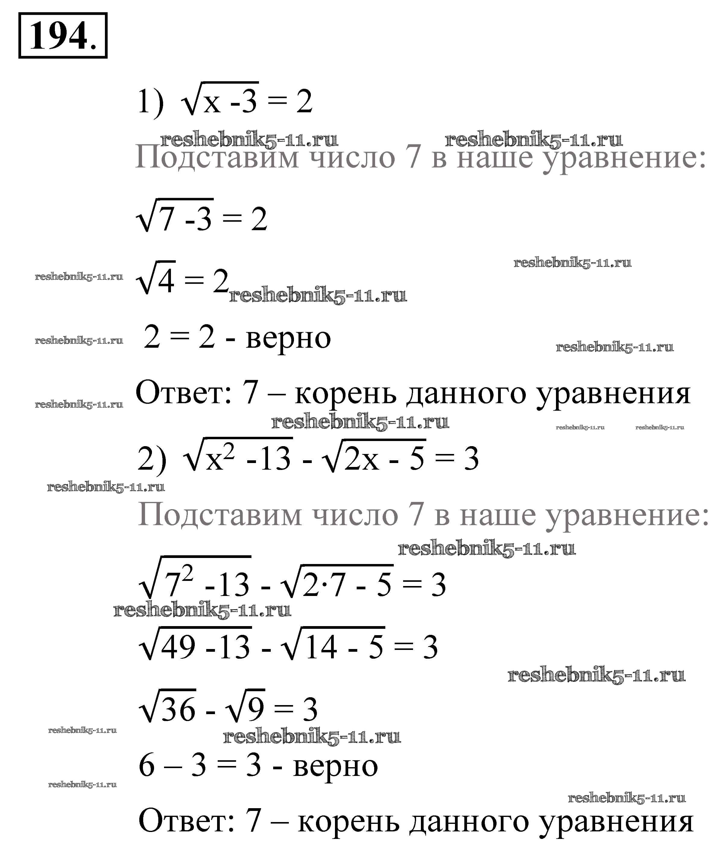 Готовая домашняя работа с ответами по Алгебре за 9 класс Алимов, Колягин, Сидоров Учебник Просвещение 2014 ФГОС - Упражнения 194