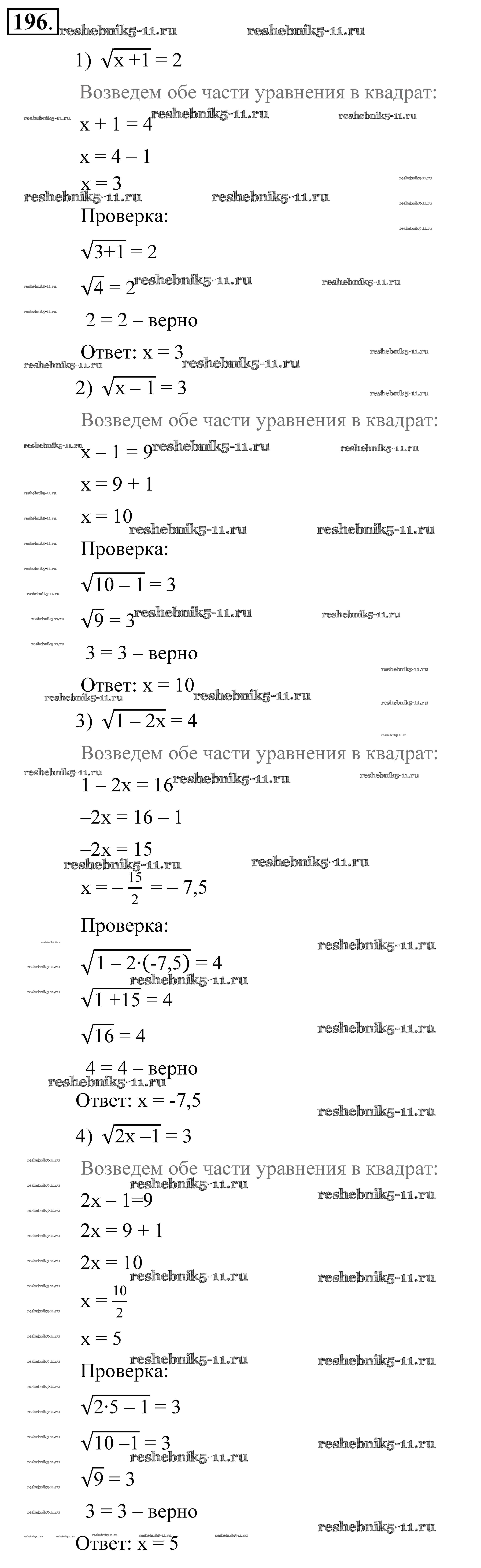 Готовая домашняя работа с ответами по Алгебре за 9 класс Алимов, Колягин, Сидоров Учебник Просвещение 2014 ФГОС - Упражнения 196