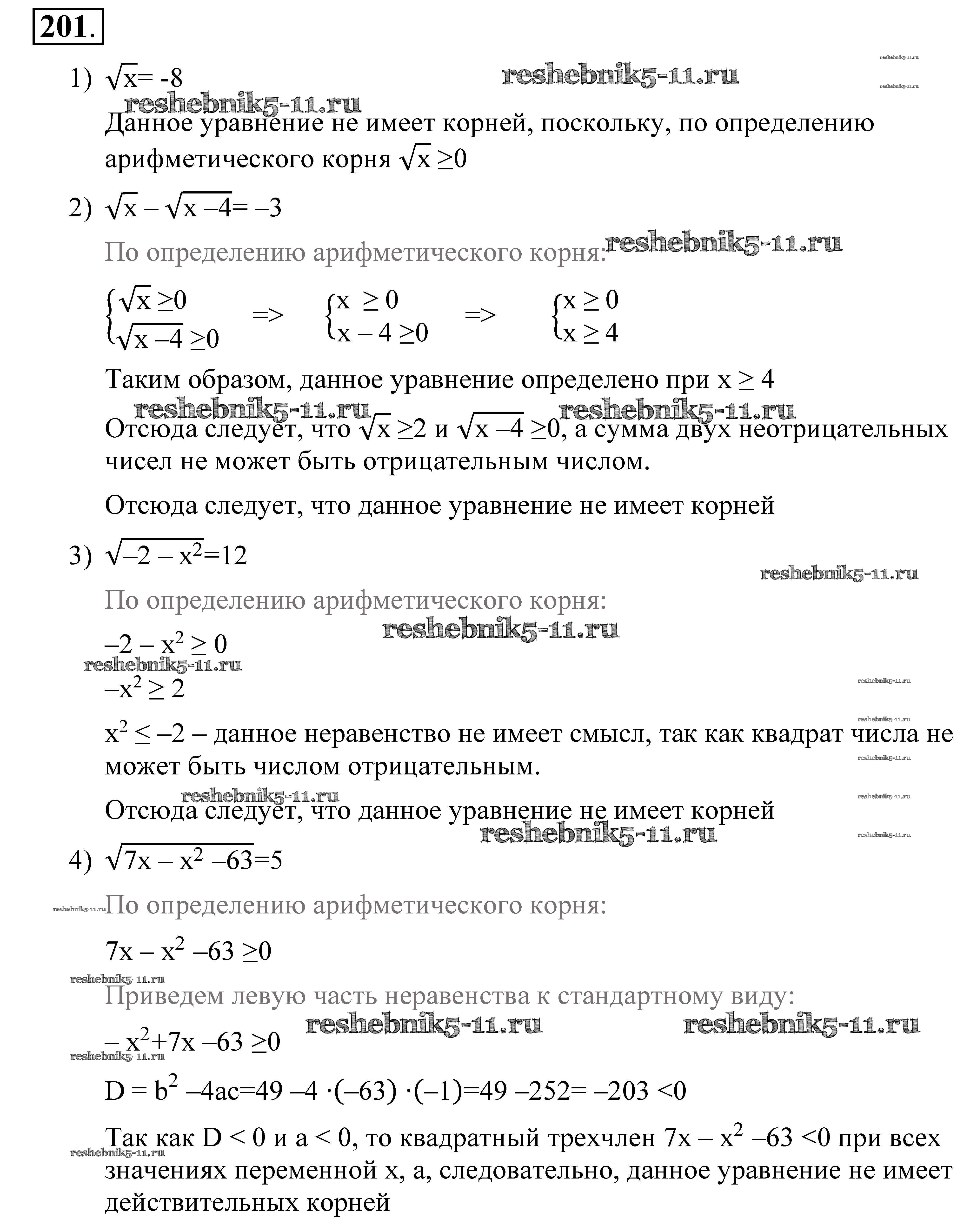 Готовая домашняя работа с ответами по Алгебре за 9 класс Алимов, Колягин, Сидоров Учебник Просвещение 2014 ФГОС - Упражнения 201
