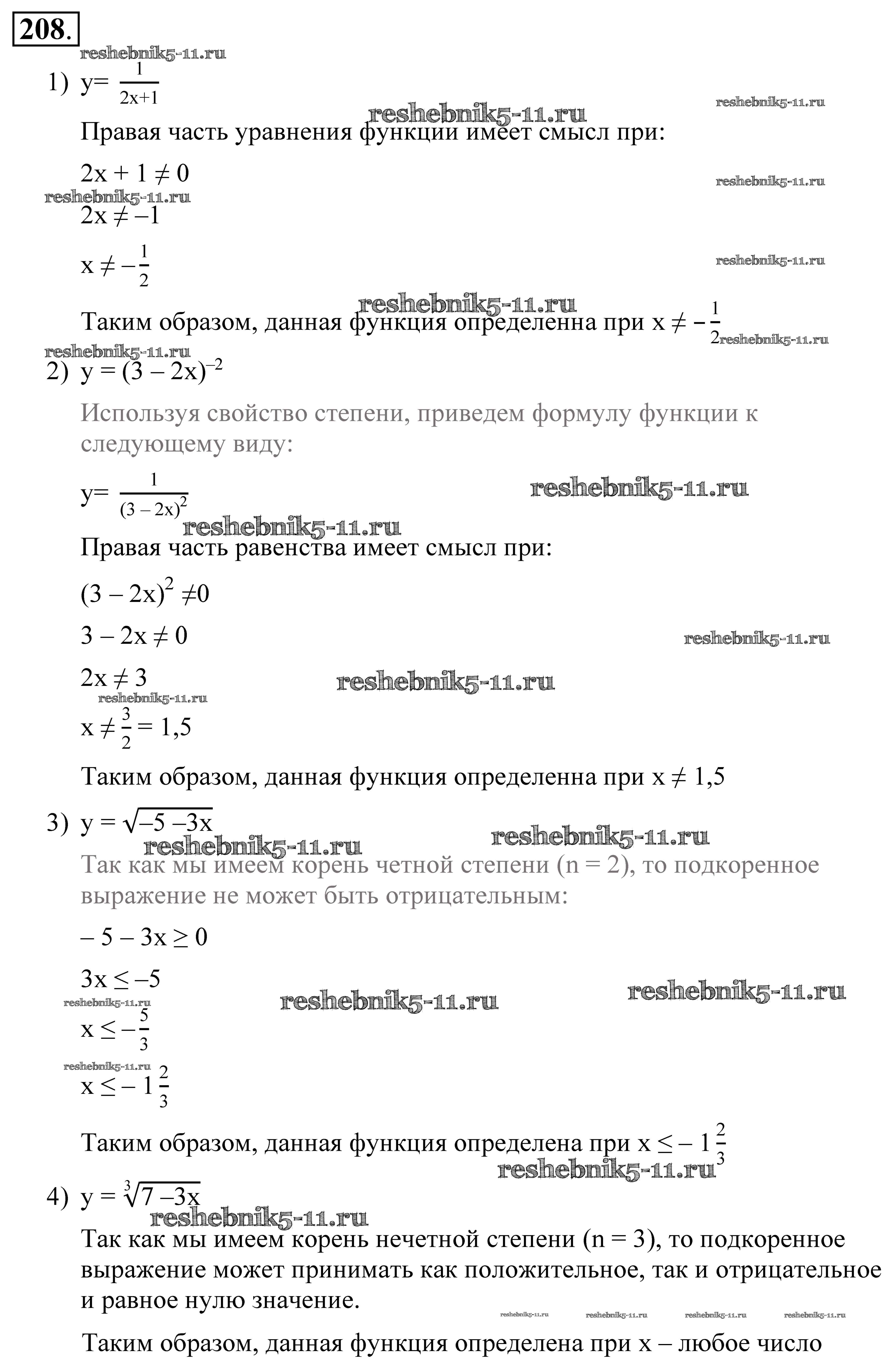 Алгебра за 9 класс Алимов Учебник Просвещение упражнение 208
