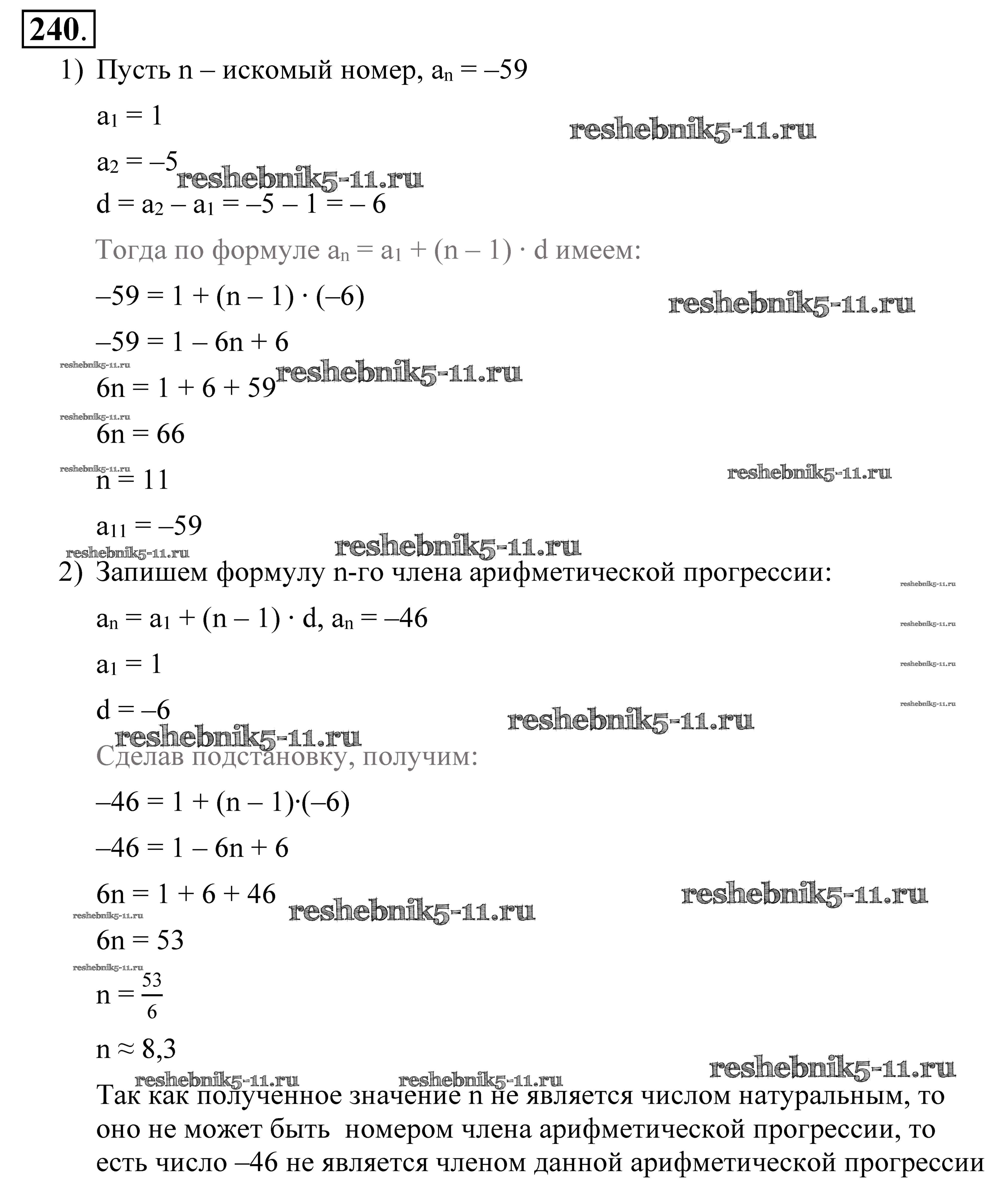Готовая домашняя работа с ответами по Алгебре за 9 класс Алимов, Колягин, Сидоров Учебник Просвещение 2014 ФГОС - Упражнения 240